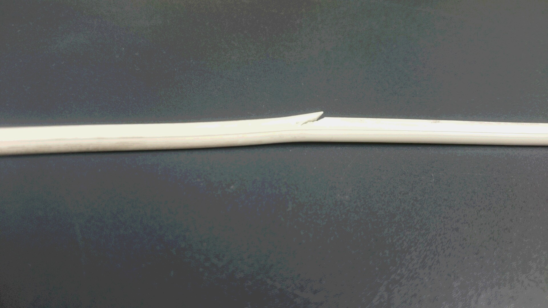その後、うさぎたん。のケージを掃除してエサをやって、自分も夕食をとってから、じっくり先ほどの回線コードを見てみると、1か所噛まれたような跡が・・。