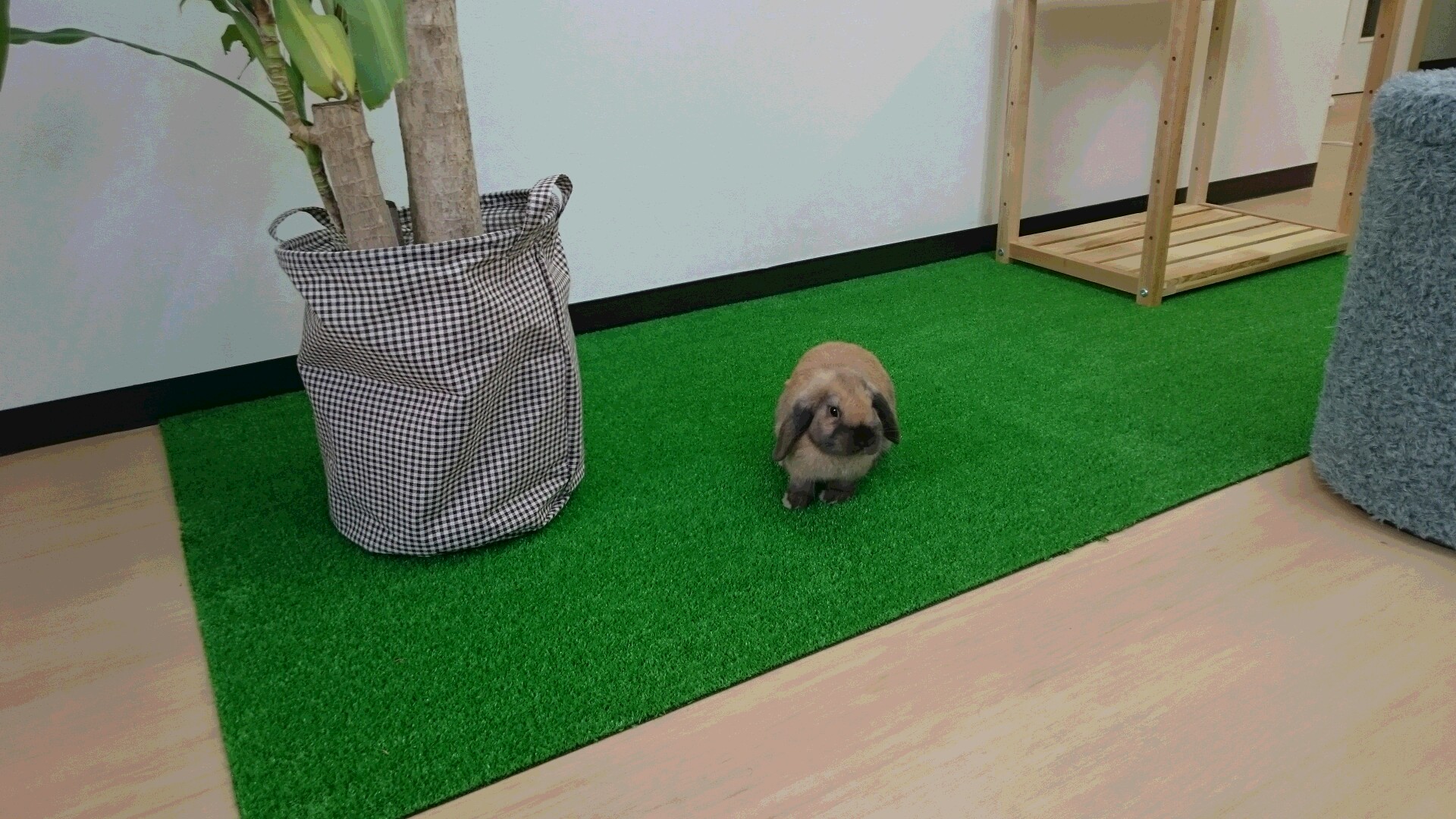 リラックマ お知らせ 2015年03月18日 宮澤です。来るらしいですよ。21日(土・祝)と22日(日)、イオン帯広店に。キイロイトリも来るのかなぁ?おじさんが一人で行ってみる勇気はないです。さて、うさぎたん。のために、事務所に人工芝を敷きました。 90×200cmくらいでも、ダッシュして走り回ったり、ピョーンと上に飛び跳ねたりと、床ではあまり見せない動きを見せてくれます。もう普通の会社には勤務できません(笑)。